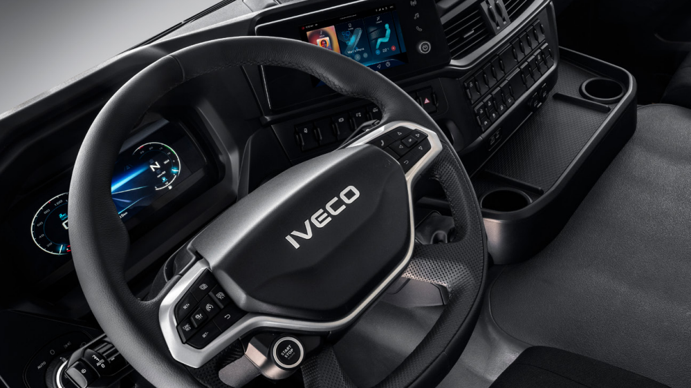 A vezető kényelme és a könnyű kezelhetőség az IVECO T-Way vezetőfülke jellemzői. Az új műszerfal a 10 hüvelykes műszerrel